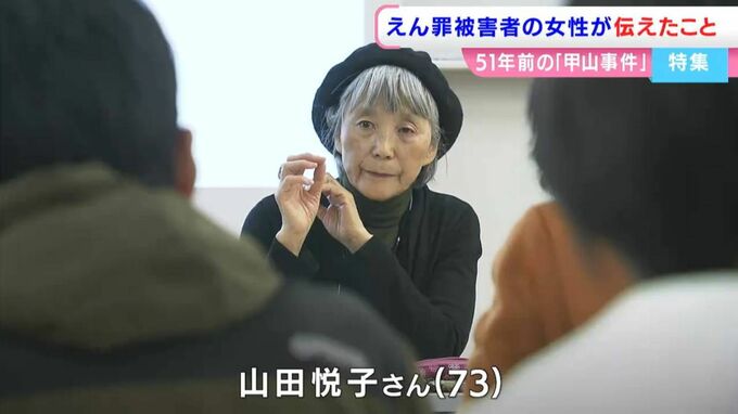 特別授業は岡山操山高校通信制が人権教育の一環として行ったもので生徒20人が参加しました。講師として招かれたのはえん罪事件の被害者、山田悦子さん(73)【画像①】です。