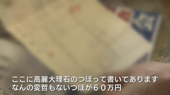 「これです。ここに高麗大理石のつぼって書いてあります。なんの変哲もないつぼが60万円」